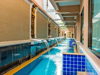Большой теплый бассейн и красивая стилистика самого здания.
