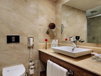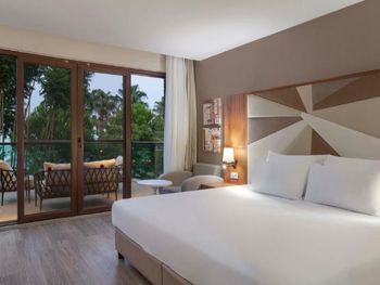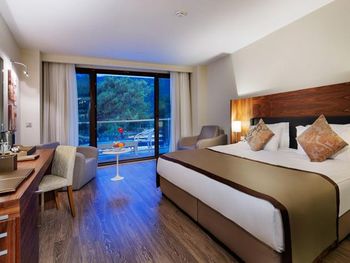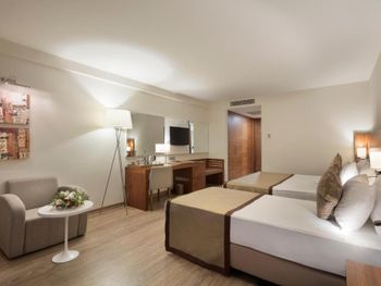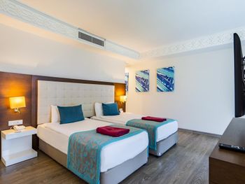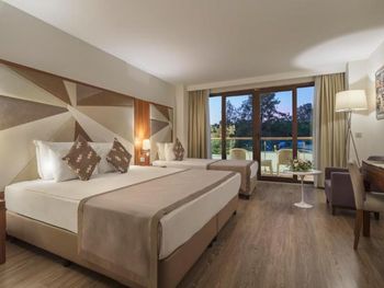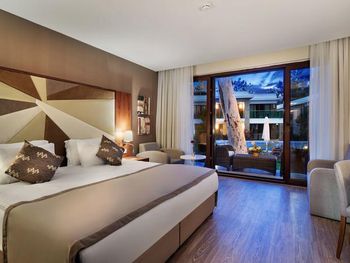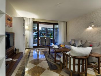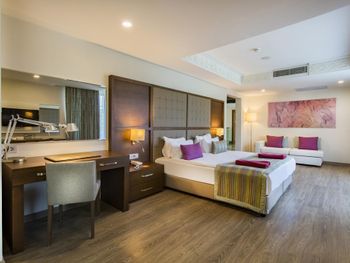 В роскошных номерах эко-отеля The Nirvana Mediterranean Excellence - Ultra All Inclusive* есть кондиционер и мини-бар. На всей территории предоставляется бесплатный Wi-Fi. В каждом номере есть сейф, телевизор с плоским экраном и спутниковыми каналами, а также гостиный уголок.