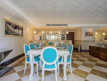 Еда была просто ужасная! Особенно в главном ресторане, хоть и ужин был до 9:30 или 10:00 вечера, в 8:00, 8:30 вечера уже половина еды закончилась и начиналась уборка, новую еду не подкладывали! Мы отдыхали в конце сентября , людей уже не так много, но на ужин записаться в ресторан а ля карте было почти невозможно, только за дополнительную плату и не могу сказать, что там было вкусно ( мясной ресторан мне не понравился)! Вино, которое было бесплатное было невозможно пить! Дети подруги отравились едой из главного ресторана дважды!!!! И стоимость осмотра местного доктора отельного- 120€!