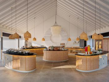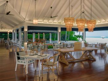 От всего остального мы в шоке. Это уровень от силы трёх звёзд!! На 50 вилл всего 7! лежаков у бассейна. При этом общественного пляжа нет в принципе, лежать можно только на вилле. Развлечений нет вообще!!!! Никакой программы, кроме кормления рыбок на 10 мин в день, при этом на виллах нет даже телевизора.. На шведском столе такого скудного выбора мы не встречали нигде! А опыт посещения Мальдив у всех большой.. Кофе в первые дни ждали по 40 мин! Потом после жалобы менеджеру стали приносить быстрее..Блюда по меню вкусные, но с сильно завышенной ценой. На острове нет даже маленького магазинчика ни с предметами первой необходимости, ни с кремами от солнца.. Друзья сильно обгорели и попросили на ресепшн хоть какую-нибудь мазь или крем, пообещали принести и так никто ничего и не принёс. Все работают медленно и неохотно, как будто заработать денег отель не заинтересован в принципе..