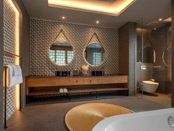 Отель, это место, то пространство куда клиент должен и обязан?раз за разом возвращаться, желая окунуться в приятные, теплые воспоминания , которые он получил от пребывания в месте где все от интерьера до экстерьера создано исключительно ради него и для него -ощущать как повседневная рутина, вся та суета ) больших городов, отпускает его -плавно погружая в релакс ?! Но, у нас получилась другая история, и дело тут в том , что менеджмент ( не персонал, не люди работающих руками ) а именно менеджмент отеля , крайне посредственно относится к своим обязанностям по контролю работы отеля , в результате это ты начинаешь обращать внимание, на детали и те моменты которых в принципе не должно быть в отеле пять звезд ( но скорее всего это особые маленькие нюансы Таиланда ?) Теперь коротко о том что именно раздражало : если ты не уведомишь табличкой с просьбой убрать номер то персонал в принципе его не будет убирать от слова совсем ??? их ( персонал) грязные номера не беспокоят , если ты вывесил табличку во второй половине дня, тебе ни кто ни чего убегать не будут, тебе не принесут ни воды, не полотенца ни уберут пакеты с мусором , если ты снял табличку продолжаешь ждать уборку дальше……, в результате перед входом в виллу на черном граните у всех вилл большие жирные пятна от мусорных мешков , душевая сделана из натурального камня который по какой-то неведомой причине в жутких белых разводах , веранда у бассейна сделаны натуральной доской ( это большой плюс ) а минус -она частично сгнила и ее практически всю вывернуло? лечат данную неприятность наш «гостеприимный» менеджмент гвоздями с белой замазкой отчего ходить по этой доске выглядит кране опасно , переодически ты бодро подскакиваешь в 5:30 утра под свист забившегося насоса бассейна пытаясь сообразить что сейчас взорвется ?, когда-то вход на виллу по задумке архитектора должен был быть украшен галькой и декоративными растениями - но шли годы и поход персонала в отсек для обслуживания виллы переместили...