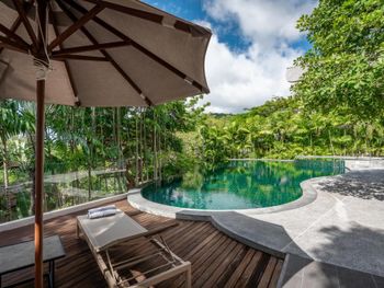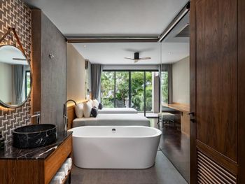 Отличное тихое место со своей большой территорией. Несколько раз в день ходят трансферы до пляжа и до местных достопримечательностей. Мы были на мопеде, поэтому нам достаточно было бассейна, но и парковка для нас была бесплатная. Приятным было то, что у нас был включен минибар, который ежедневно пополнялся., С 4-5 бесплатный afternoon tea для всех гостей отеля с угощениями и безалкогольными напитками. У нас был номер приватный с джакузи и это один из лучших вариантов, которые тут есть. Самый высокий этаж с огромной террасой и шикарным видом. Очень тихо, зелено , шикарно! Завтраки отличные! Хоть и не огромный выбор, но все что нужно! Фрукты отменные! Лучший отель в котором мы были на пхукете! Жемчужина острова, в джунглях!