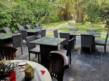 красивая территория отеля. прекрасный сад! вараны, обезьяны, светлячки ночью, птицы, собачка :) звуки природы, совсем не слышно тук-туков и т.д.! 2 вполне удобных кресла и столик на улице.