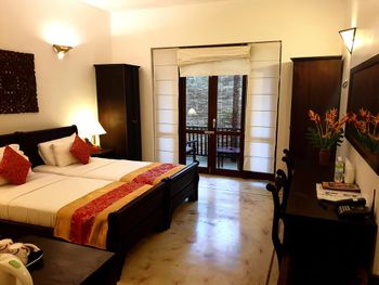 Ночевали 1 ночь. Территория отеля большая, красивая. В основном здании старинная мебель, картины, посуда. Номер был небольшой, с вентилятором, но мы и выбирали подешевле. Ванная комната большая, но нет вентиляции. Хороший завтрак «шведский стол». Бассейном воспользоваться не удалось, так как был дождь. Решили сходить в СПА, и были очень разочарованы. Выбрали программу со скрабированием, массажем и обертыванием. Цена- 6000 рупии, 60 минут. В итоге нас намазали неприятно пахнущей жижей, полежали по 10 минут на спине, потом на животе и отправили в душ. На этом процедура закончилась(((