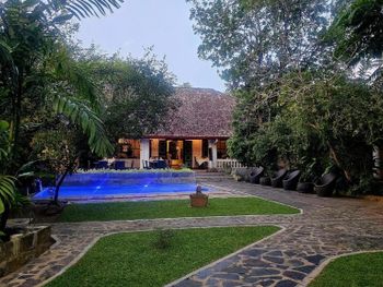 Провели ровно неделю с друзьями в этом прекрасном незабываемом месте, бывшей резиденции голландского губернатора! Все здесь очень понравилось: просторные номера со смежной дверью для 4-х человек; добираться до пляжа Унаватуна 10 минут по приятной улочке с сувенирными прилавками; персонал очень дружелюбный, что не попросишь - все сделают! Завтраки сытые и вкусные. Ужин за дополнительные средства также восхитителен! Бассейн так вообще сказка, проводили здесь с друзьями пару дней пока шли небольшие дождики на пляже. У бассейна появляются разные животные: бурундуки, обезьянки, павлины, а также в пруду живут вараны, так что это были незабываемые 7 дней в отеле! Все друзья в полном восторге, персоналу большое спасибо! Желаем вам процветания и хороших гостей!