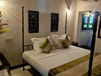 Ночевали 1 ночь. Территория отеля большая, красивая. В основном здании старинная мебель, картины, посуда. Номер был небольшой, с вентилятором, но мы и выбирали подешевле. Ванная комната большая, но нет вентиляции. Хороший завтрак «шведский стол». Бассейном воспользоваться не удалось, так как был дождь. Решили сходить в СПА, и были очень разочарованы. Выбрали программу со скрабированием, массажем и обертыванием. Цена- 6000 рупии, 60 минут. В итоге нас намазали неприятно пахнущей жижей, полежали по 10 минут на спине, потом на животе и отправили в душ. На этом процедура закончилась(((