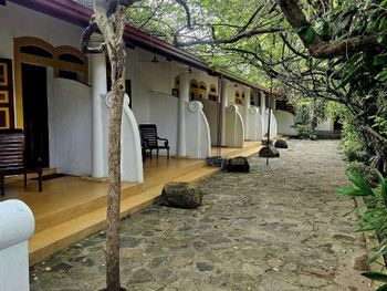 Прекрасная большая, зеленая, насыщенная животными и пением птиц территория, просто оазис в шумной Унаватуне! Отличный бассейн, хороший завтрак «шведский стол». Персонал дружелюбный, не навязчивый, постоянно работают. Обезьяны, вараны, пальмовые белки, павлины и много разных птиц будут вашими соседями. Близость к Гале форту, можно свободно вечером не тук туке 1000 рупий и примерно 10 минут побывать в замечательном месте насыщенном кафе и прекрасной архитектурой. Ездили несколько раз гулять и ужинать именно в Гале форт, так как там не так жарко и шумно, нет такого движения.