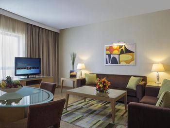 Nour Arjaan by Rotana, Fujairah offers deluxe hotel apartments that represent the height of elegant city living for short and long-stay residents and travelers alike. Ideally located right in the beautiful city centre close to Fujairah‘s rich cultural attractions and just a five minutes drive to Fujairah beach. This city hotel boasts unobstructed views of the Hajar Mountains and overlooks the Sheikh Zayed Grand Mosque.