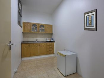 В номере большая кухня, но нет ни плиты, ни микроволновки, ни посуды. Кух.шкафы и раковина и все. Уж если есть кухня, поставили бы хотя бы микроволновку или плитку.