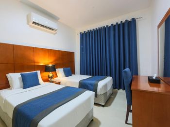 Хорошее соотношение цена-качество. Бронировали семейный номер с гостиной, нам ставили дополнительную кровать для третьего человека. Есть трансферы на 2 пляжа и в Дубай, надо записываться. Есть небольшой закрытый бассейн.