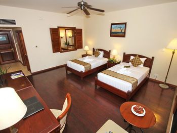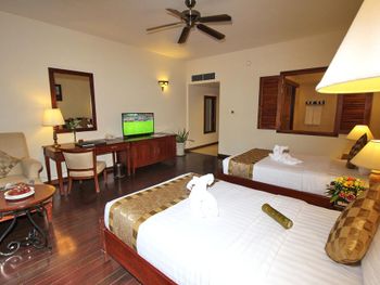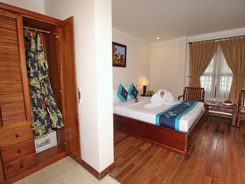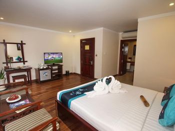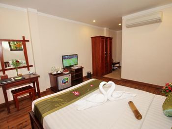 при заселении забирают паспорт ну или в нашем случае мы оставили в залог 100 долларов (новая купюра). в номере недостаточно освещения (неудобно наносить макияж). Более внимательно персонал относится к уборке, если оставить чаевые. Кондиционер - классика жанра, старый шумящий дует прямо на кровать.
