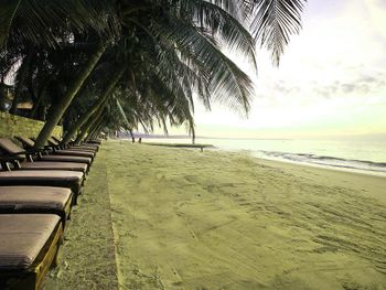 Неплохой пляж, лежаки под пальмами, от номера до пляжа путь занимал 40 секунд.