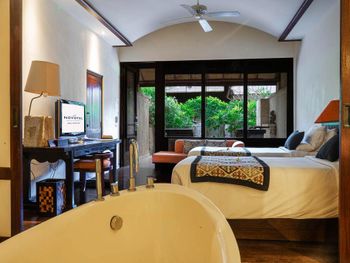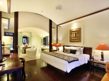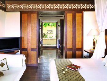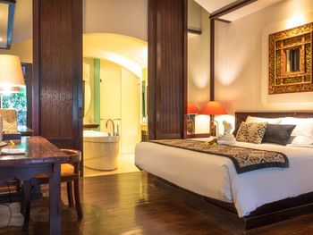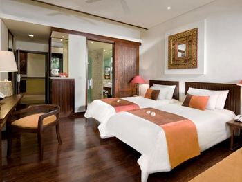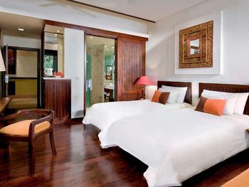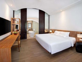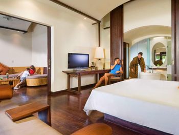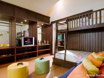 Furnished with dark wood fittings, Novotel Benoa’s rooms feature either a private balcony or tropical garden views. They are well-appointed with satellite TV, a safe and seating area.