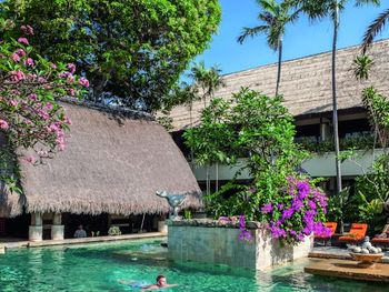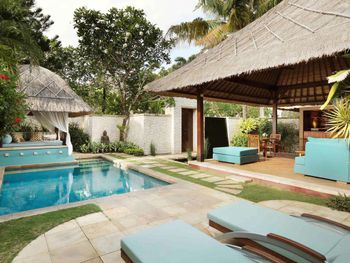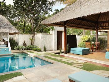 Территория отеля очень красочная. Красивые аллеи с растениями, за которыми ухаживают. Сам отель симпатичный, тут "традиционный балийский" стиль смотрится выигрышно. Бассейн у пляжа хороший, в течение дня его периодически чистят от опавших листьев. Удобные лежаки. Полотенца, которые выдают на пляже и которые можно по желанию в любой момент заменить. И которые, правда, следует тщательнее стирать...