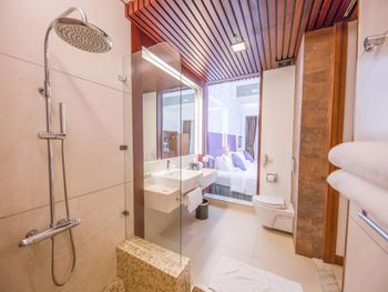 - Самый главный плюс – это расположение отеля, доступна вся инфраструктура вокруг - Персонал достаточно приветлив и отзывчив — решил все возникающие неудобства - Номер был достаточно чистым и просторным - Уборка каждый день, как положено - Высокие потолки и просторная ванная комната - Зона, где стоит унитаз — визуально закрыта от комнаты - Симпатичный просторный балкон с хорошим видом - Кондиционер работал исправно - Воду приносили каждый день - В ресторане можно заказать омлет на завтрак - Есть своя небольшая бесплатная зона с лежаками на пляже