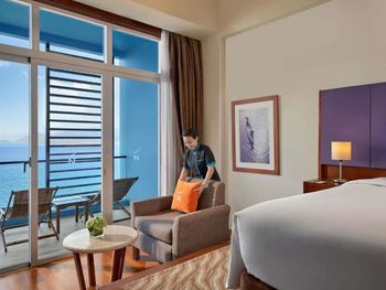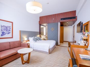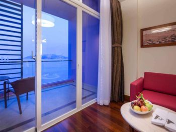 При заезде выяснилось, что заказанный высокий этаж это 4-й из 17-ти и номер будет готов строго в 14 00, но при доплате в 17 баксов за ночь, номер взлетит на 11-й этаж и будет готов через 10 минут. Пришлось доплатить. Русскоговорящую сотрудницу видели на ресепшен только 2 раза и то в вечернее время. Дверь в санузел сдвижная, тяжёлая, если не придержать грохочет о косяк при закрывании, жена прищемила палец. Раскладная софа видимо была сломана, т.к. сидя на ней проваливаешься внутрь. Плохо, что нет переходников с вьетнамских розеток на европейские. Транcфер в аэропорт в 6 утра нам оценили в 530 000 VND, сказав что такси обойдётся в 350 000, мы взяли голубое такси, которое всегда дежурит у отеля и доехали по счётчику за 565 000, тогда как с аэропорта в отель Комодо трансфер нам обошёлся в 400 000.