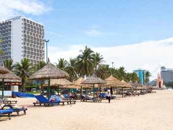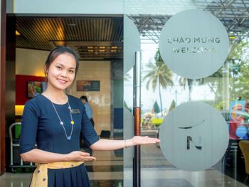 Объект размещен на первой линии , прямо перед парком и пляжем . Есть пешеходный переход , перейти улицу помогают работники отеля , что очень приятно , учитывая нюансы транспортного движения во Вьетнаме. Иногда возможно занять бесплатные лежаки от отеля, а если нет , стоимость 100 т донгов. Отель очень комфортный и удобно расположен . Все окна с видом на море. Понравился шведский стол со вкусными блюдами вьетнамской и европейской кухонь. Персонал очень внимательный, приятный в обслуживании . Номера тщательно убираются. Хороший Спа салон с бесплатным хаммамом и сауной.