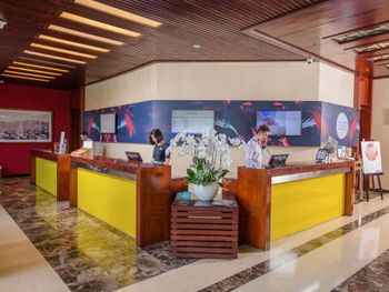 Отель опрятный, персонал доброжелателен. Не знаю совпадение или нет, но со 2-го дня проживания, как только мы входили в отель, лифт уже стоял с открытыми дверями. Очень выгодный (честный) курс обмена на ресепшен, 23 100 за бакс, когда в Комодо нам меняли по 22000. Секьюрити помог перейти дорогу на пляж (хотя и всего 1 раз, но приятно). Завтраки очень разнообразные, на любой вкус. Сотрудники очень внимательные, с первых дней предлагали и готовили нам горячий кофе, видимо зная, что европейцы предпочитают его в таком виде. Удивила очень хорошая звукоизоляция в номере, как с внешней стороны, так и с коридора. Номер был не с фронтальной стороны, но с красивым видом на море и город. Телевизор был с 2-мя каналами на русском. Одна розетка уже была раздолбана под евро вилки (из под чайника).