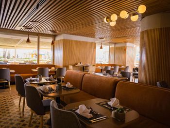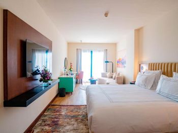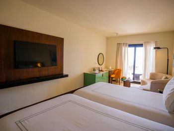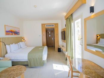 Отель на вид выглядит презентабельно,ухоженная территория( мы жили в крыле через дорогу от моря) ,но неуютный, посидеть можно только у рецепшн,ресторана и на лежаках у бассейнов, звучит немало, а по факту нигде не комфортно,на лежаках почему то много мух, лежишь от них отмахиваешься,пока нервный тик не появится))), на территории нет никаких релакс зон. Персонал не дружелюбный, особенно в едальне, рестораном это назвать нельзя, это даже хуже студенческой столовой ,очень суетно и шумно,причем этот шум создает в том числе персонал гремя приборами , тарелками,когда их убирает. Еду не подают на раздаче,а наваливают в тарелку с мрачным выражением лица) (может нам такая смена усталая попалась).Питание в отеле из серии еды для бедный: каллорий получить можно много, а именно вкусной Еды ноль. контингент в наше прибывание состоял в основном из людей , которые купили туры еще летом ( наверное задешево), им наверное нормально))) Видела людей,которые заедали картошку макаронами и одновременно пили пиво и вино (не вино, а непонятное пойло))).На пляже лежаков много , но тоже не раслабишься, прям как на пляже где нибудь в Анапе в советское время. Интернета нет,то есть он есть ,но по факту только у рецешн его надо ловить.Очень неудобно.