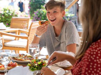 Есь ресторан à la carte. Повару стоит поработать над соусами, но еда в целом хорошая, а обслуживание исключительное.