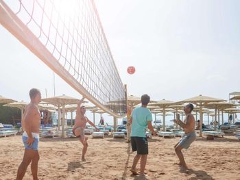 Хорошая волейбольная площадка. территория отеля не большая, но очень ухоженная.