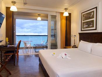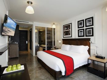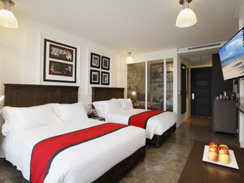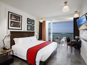 Неплохие номера в стиле лофт. Чисто. Удобный матрас. Завтраки европейской и азиатской кухни в двух ресторанах, так что мест хватает. Пляж сразу при выходе из отеля. На крыше отличный открытый ресторанчик с видом на море.