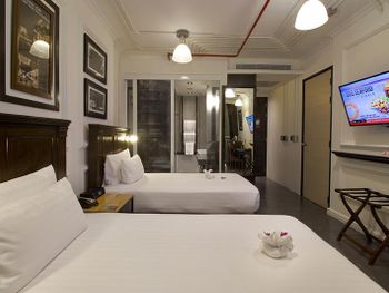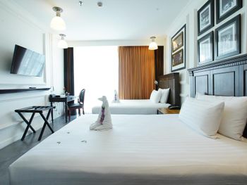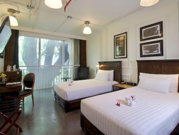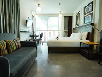 Приезжала на отдых на неделю. Первое впечатление, при входе в номер было плохо убрано. Палас плохо очищен, на полу мусор и даже спокойно лежала мертвая ящерица возле кровати. Полотенца старые, желто-серого цвета. Халаты такие же. Мыльные принадлежности лучше не использовать, берите с собой. Бар у бассейна в первый день порадовал, так как не было китайских туристов, чист вполне. На следующий день заселилась группа китайцев и уже в бассейн у бара было не зайти. Поверх воды огромные плевки. Ужасно. Самый ближайший магазин 7-Eleven в пяти минутах, по дороге совершенно ничего нет, но это не было проблемой. Рядом с ним также магазинчик drugstore. Напротив вход в Храм. Вход в Храм 500 батт. В дополнение, вечером слишком шумно, предпочитала ложиться спать до 11-и, но хлопанье дверьми и крики китайцев не позволяли. В итоге осталась всего 3 ночи и переехала в центр Бангкока.