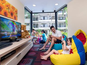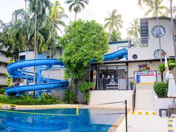 Близость к пляжу Сурин Вечером кинотеатр на улице для детей Ежедневно вода в бутылках в номере Кондиционер работает , даже если уходишь из комнаты . Приятно возвращаться в прохладу Горки в бассейне для ребенка