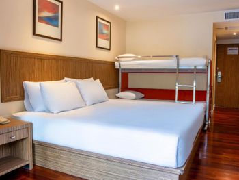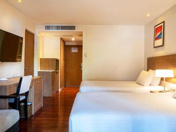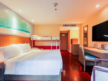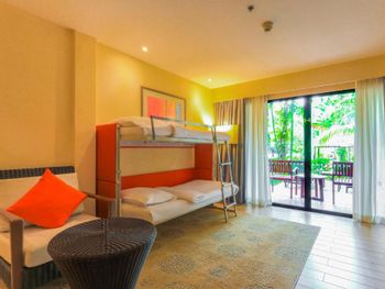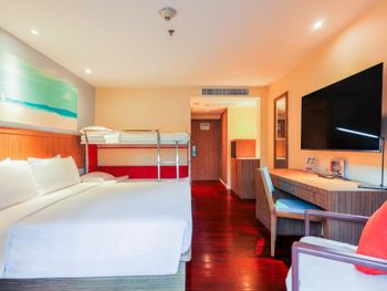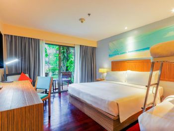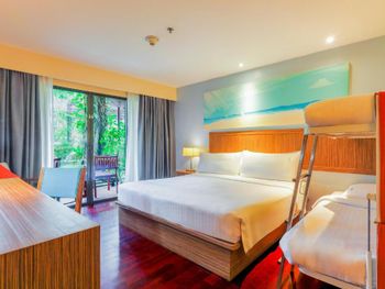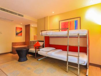 Отель правда уставший. Кондиционер в номере работает как старый пылесос, шумит так , что с ним спать невозможно, а без него очень жарко. Во время заселении не работали каналы и телефон в номере, но быстро все сделали. Нет сушилки для вещей, прям супер не удобно. А еще эта дверь , которая между двумя номерами, это странно. Соседи ночью два раза ломились через нее к нам, видимо пытались понять зачем она. Завтраки быстро заканчиваются и персонал не успевает все докладывать и приходится ждать еду. Детскую игровую комнату нужно приводить в порядок. Много рванного и сломанного и грязного. И еще, в обеденное время начинаются активности на улице, поэтому если вы или ваш ребенок решили отдохнуть , то навряд ли получится, потому что это будет греметь музыка и крики в микрофон. А еще оплаты в отели все через наличные или карту , эпл пей у них не работает ( а по всему Таиланду работает)