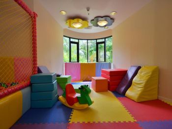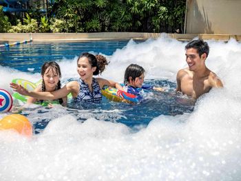 Занятия для детей. Небольшой терраса перед номером с лежаками (на 1 этаже) и прямой доступ к бассейну. Пенная вечеринка для детей в бассейне.