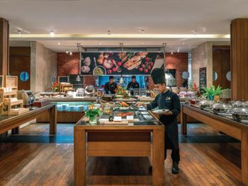 По утрам в ресторане Asia Alive сервируют завтрак «шведский стол», а в течение дня подают блюда интернациональной кухни по меню. В баре Joe's Kool гостям предложат напитки. В гриль-баре Champions можно заказать сытные блюда и посмотреть спортивные передачи по телевизору.