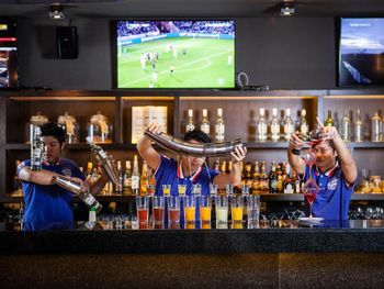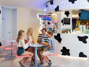 По утрам в ресторане Asia Alive сервируют завтрак «шведский стол», а в течение дня подают блюда интернациональной кухни по меню. В баре Joe\'s Kool гостям предложат напитки. В гриль-баре Champions можно заказать сытные блюда и посмотреть спортивные передачи по телевизору.