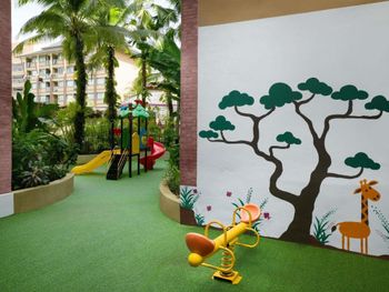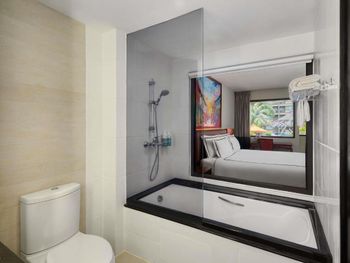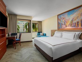Отель второй линии. Все номера выходят во внутренний двор. Хороший бассейн с джакузи и фонтанчиком. Видел как ежедневно брались пробы воды. Лежаков немного но свободные были всегда. Очень зеленая территория, пальмы бананы. Есть бар ( цены высокие) и детская площадка. Номера просторные, в номере сейф и холодильничек куда можно поставить упаковку пива. У нас в номере был утюг, фен и гладильная доска. Каждый день приносили бутылку воды и пополняли чай-кофе. Белье чистое, полотенца меняли каждый день. Третье место- не кровать, но и не раскладушка, ребенку будет спать комфортно, взрослому коротковато.Ванная просторная, чистая. Единственный момент- огромное панорамное окно из номера в ванную. Вижу такую фишку второй раз и не могу понять- зачем? Если вы пара и молоды можно конечно классно «взбодрить» отношения, да и то.. А если вы с детьми, не забывайте опускать шторку до конца ,а то можно нанести непоправимый психологический вред своему чаду. Хорошие завтраки, есть и сосиски и мюсли и бекон . Яйца жарят пяти видов.У входа слева холодильник с сыром и йогуртом. Много выпечки. Очень душевно с утра заходит бульон с лапшой и яйцом. Есть много тайских блюд, из фруктов бананы арбуз маракуйя папайя, дыня невкусная. Кофе из кофе машин. У бассейна при нас была анимация для детей и пенная дискотека. Есть аренда детских гидроскутеров ( дорого). До пляжа 10-15 минут в темпе «ногазаногу».Рекомендую ходить от отеля вправо мимо отеля Индиго по цветной дороге, тихо ,мало транспорта , у переростка с первой линией слева есть Севен- Елевен. После того как перешли первую дорогу берите курс на 10 часов влево и через парк , мимо памятника, зазывал, барыг с шезлонгами идите по пляжу до кусочка пляжа напротив отеля Импиана. Только там еще осталось место где можно комфортно и бесплатно расположиться наполотенцахв тени деревьев. На красные флаги " Купаться запрещено" внимания не обращайте- их ставят те же барыги шезлонщики. Вообщем, спасибо отелю за прекрасный отдых.