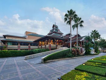 Красивая территория с бассейном, растительность и красивый ресепшен.
