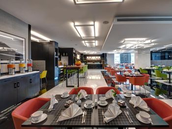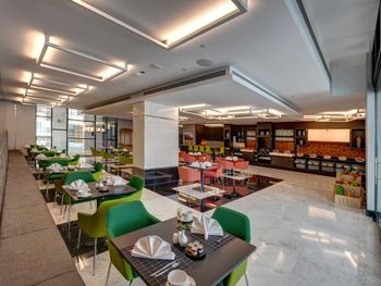 Ежедневно гостям подают завтрак «шведский стол», континентальный завтрак или американский завтрак. При Novotel Sharjah Expo Centre работает ресторан, где подают блюда ближневосточной кухни и блюда тайской кухни. По запросу для гостей приготовят халяльные блюда.