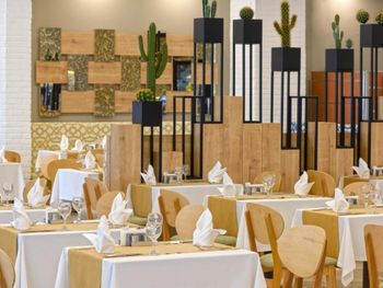 В главном ресторане сервируется завтрак, обед и ужин «шведский стол». В ресторане с обслуживанием по меню предлагаются блюда интернациональной кухни. Романтический ужин может быть сервирован возле бассейна. Закуски и освежительные напитки в течение дня подаются в баре на пляже.