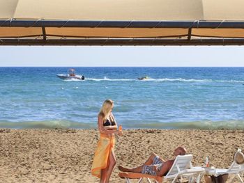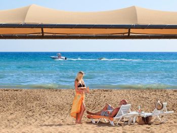 - очень хороший, малонаселённый, песчанный пляж, чистое море, много лежаков. На пляже можно поучаствовать в различных играх (напр. волейбол);