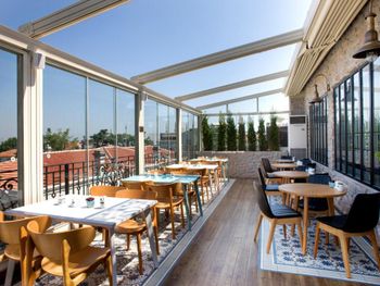 На обустроенной на крыше террасе, откуда открывается вид на собор Святой Софии, для гостей ежедневно сервируют завтрак «шведский стол». Позавтракать также можно в номере. По запросу подают завтрак без глютена. Кроме того, в нескольких минутах ходьбы от отеля работают местные рестораны, бары и кафе.
