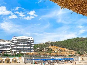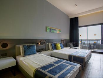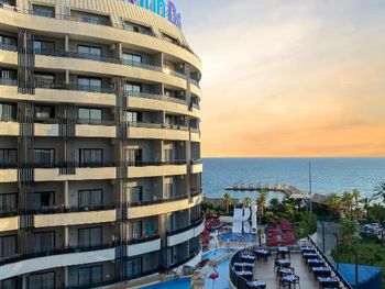 Это турецкие 5 звезд.Ничего общего с общепринятыми 5 звезд не имеет. Экономят на всем.ключ в номер будет один сколько бы человек не проживало. Питание скудное,на обед из мясных блюд только сердце. Ужин посытнее.завтрак многообразием не блещет. На ресепшене не умеют работать,пока не сказал,что мы не туристы а приват,шевелиться не стали. Заселяют отель персонажами из ТАГИЛ РУЛИТ. Везде визг детей,родителям на это по барабану,они шар залили с утра и забыли про своих чад. Поехали только от безнадеги,так наши курорты уже давно обследованы и в основном отдыхали юг Европы и др. В Турцию больше ни ногой. Горничный персонал сокращен,хорошо если раз в 3 дня уберут. По архитектуре отель очень красивый, там бы еще обслуживание европейское, а не такое,что постоянно чувствуешь,что тебя хотят обмануть. Пляж - песок , переходящий в огромные камни.Вообщем минусов больше,чем плюсов.