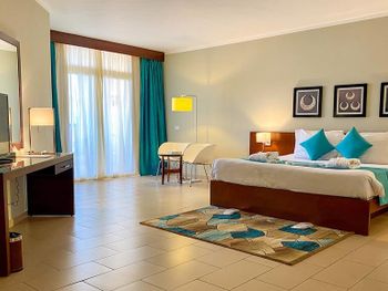 Отличный отель. Номера просторные со всем необходимым. У нас был номер с видом на море. В номере есть все необходимое, уборку проводили каждый день. Питание отличное каждый для себя что-то выберет. Риф очень красивый, правда мы были в ветренное время периодами очень сильно дул ветер. Территория большая и вся ухоженная. Очень приятно было гулять по территории.