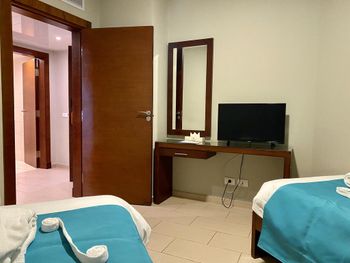 Не хватает кабинок для переодевания на пляже и у бассейна. Очень шумная итальянская анимация в дневное время. Между основными приёмами пищи нет нормального питания. 1 января можно было сделать более поздний завтрак.