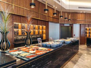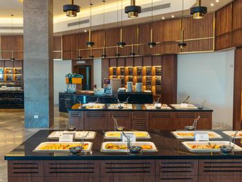 В курортном отеле работают несколько ресторанов, в которых можно попробовать изысканные блюда из морепродуктов, эксклюзивную итальянскую кухню, пиццу и многие другие блюда. В барах с полным спектром услуг можно заказать коктейли.
