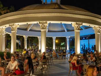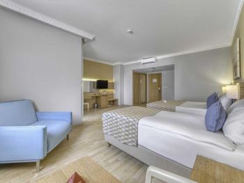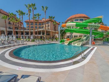 Хороший отель на второй линии со своим благоустроенным кусочком пляжа, достойный отдых за вменяемые деньги. В отель попали ближе к вечеру, вместо забронированного стандартного номера на двоих дали двухкомнатный family-room на последнем этаже. Сначала не поняли, от чего такая щедрость, но утром все встало на свои места: из ванной шел очень сильный запах канализации. В обед спустились на ресепшен, объяснили свою проблему, и нам без вопросов поменяли номер на Стандарт. Сотрудники ресепшен говорят на английском, немецком и русском языках, официанты, говорящие на русском не встречались, но английским также владеют неплохо. В целом видно, что отель "заточен" на немецких туристов, но какого-либо негативного отношения к русским не встретили, все были дружелюбны. Питание в отеле очень разнообразное и вкусное, за время пребывания были тематические ужины, и если день турецкой кухни была на высоте, то "морской день" был средним, роллы и креветки были пресными, взяли обычные блюда кухни, которые были очень вкусными. Также на удивление хочу отметить вкусные десерты. Всегда был чизкейк, а также большое разнообразие иных тортов и сладостей, которые отличались от обычного набора в турецких отелях. Что касается алкоголя: импортный алкоголь представлен в лобби-баре и баре у бассейна. Бары на пляже и около него работали только с местным алкоголем, но стоит отметить, что он был вполне неплох, на утро ни разу не болела голова после него. Отдельно стоит отметить наличие баночного и разливного Guiness в лобби-баре, периодически брал баночный на пляж. Уборка в номерах была каждый день, а вот с пополнением запасов мини-бара вышло не очень: мальчик пришел для пополнения бара в день, когда заселились, т.е. мини-бар был и так полный, и в день выселения, когда это уже и не нужно было. До пляжа метров 250-300, если лень идти пешком, то можно сесть на электрокар, который курсирует от отеля до лестницы на пляже.