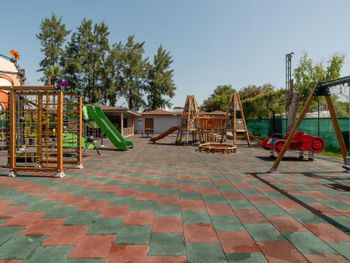 Чистые номера, полностью совпадают с фотографиями. Отдельный плюс это наличие трех полноценных кроватей в номере для двух взрослых с ребёнком. Еда разнообразная. Есть детская площадка.