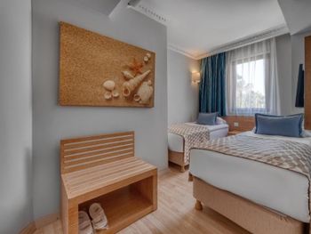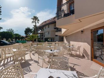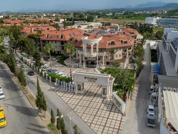 Небольшой по местным меркам отель, с уютной территорией. Нет шумной аннимации, в целом очень спокойная атмосфера. Прямо у отеля останавливается долмуша (номер 4) до старого города Сиде, ходит очень часто, ехать 25 мин. Рядом стоянка такси:20 евро до Сиде, 80 евро до Аланьи. Мы заказали трансфер в интернете за 88 долларов до Аланьи и обратно, долмуща до Сиде стоит 4 евро. Так что не рекомендуем переплачивать за такси. На пляже очень плавный заход в воду, песчаное чистейшее дно. Летая на парашюте, сверху увидели, что у соседних отелей в воде огромные камни, так что тут наш отельчик очень выигрывает. От отеля до пляжа ходит гольф-кар, хотя ехать меньше минуты:)В целом остались очень приятные впечатления от отдыха