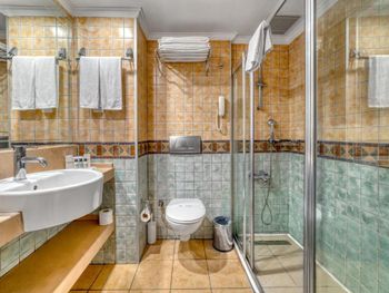 В отель попали ближе к вечеру, вместо забронированного стандартного номера на двоих дали двухкомнатный family-room на последнем этаже. Сначала не поняли, от чего такая щедрость, но утром все встало на свои места: из ванной шел очень сильный запах канализации. В обед спустились на ресепшен, объяснили свою проблему, и нам без вопросов поменяли номер на Стандарт. Сотрудники ресепшен говорят на английском, немецком и русском языках, официанты, говорящие на русском не встречались, но английским также владеют неплохо. В целом видно, что отель "заточен" на немецких туристов, но какого-либо негативного отношения к русским не встретили, все были дружелюбны.