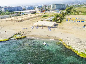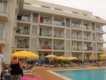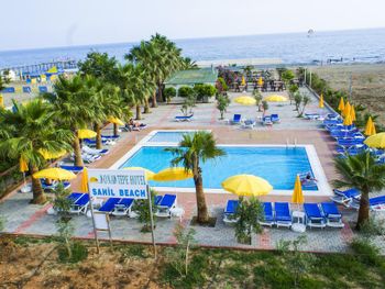Прямо на пляже отеля была труба со сливом непонятно чего, пахло от туда сероводородом, и там купались маленькие чёрные червячки :((( Думаю, для многих это может быть определяющим фактором... Можно ездить до Алании на пляж Клеопатры (минут 15 на автобусе).