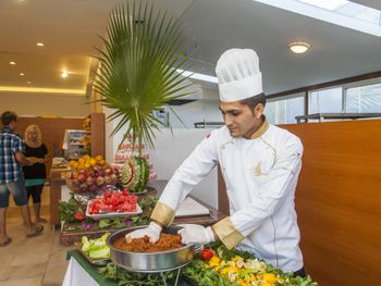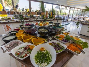 В главном ресторане отеля подают завтрак, обед и ужин в формате шведского стола. Также работает 4 бара: на пляже, у бассейна, в лобби и диско-бар. В течение дня вы можете заказать разнообразные закуски, а на ужин в ресторане предлагают блюда по меню.