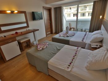 Отдыхали в октябре 2019г. Отель легко найти, если добираетесь самостоятельно. Персонал вежливый, почти все говорят на русском языке или понимают его. Чистые, уютные номера. Приятные горничные. Два чистых бассейна (один, где весело и шумно, другой для спокойного отдыха). Хорошая анимация (танцевальные шоу, кавер-группа, конкурсы, мини-диско и тд). Вкусная и разнообразная еда (говядина, курица, рыба, соя, овощи, фрукты, сладкое, разные закуски). Сильно пьянящее вино😄 Бассейн у моря, на котором всегда мало людей. На пляжной зоне подают напитки и закуски. До пляжа идти минут 7. Есть трансфер, но мы им даже не пользовались, потому что расстояние совсем небольшое. Есть подземный переход.