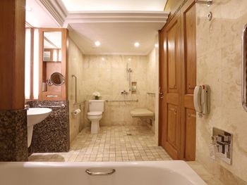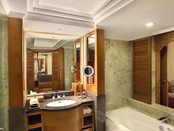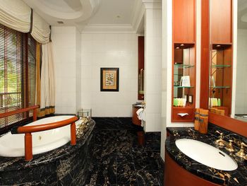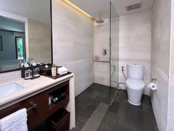 В санузле в номере Пьемьер всегда на каменном полу болото,так как в душевой только тропический душ,а дверца неплотно закрывается,гибкий душ в узкой ванной, и вся вода из душа и ванны оказывается на полу в середине санузла. Очень неприятно.